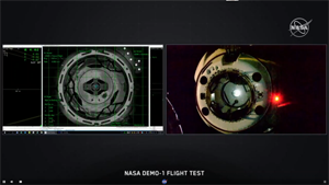 “载人龙”利用热和激光测距传感器以及一个相对GPS导航系统来靠向空间站。飞船先后经过了位于空间站下方400米和20米等停泊点。接近过程中,空间站上的宇航员一度通过穹顶舱内的控制面板向飞船发送后退指令。这项关键测试意在确保站上人员能在出问题时命令飞船停止靠近,以免船站相撞。