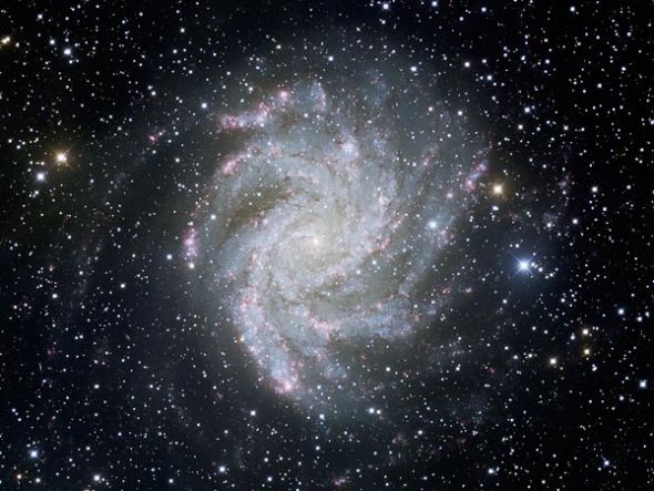 很多恒星在星系NGC 6946的螺旋臂上闪闪发光,这张照片是亚利桑那州基特峰国家天文台最近公布的。据该天文台说,在过去1个世纪里,天文学家在这个星系的螺旋臂上确认出8颗超新星,这使NGC 6946成为发生恒星爆炸最多的星系。