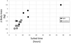 在返回地球之后,所有宇航员的心跳都有所加速、且体重有所减轻。而且这种情况与他们穿宇航服的时间更相关 —— 无论在真实、或模拟的条件下。