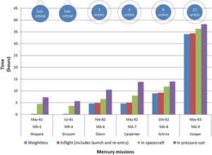 一项新研究显示,尽管太空环境对首批上天的美国宇航员的身体造成了一定的影响,但是随着他们在零重力环境下所待的时间的增长,不舒服的太空服对其身体造成的伤害反而更加严重。美国政府通过水星计划(1961~1963 年间的 6 次发射),将该国首批宇航员送入了太空。在任务前后(时长 15 分钟、到 34 小时不等),宇航员们都被仔细检查了他们的心率、活动、体温、排尿、液体摄入、以及体重损失。